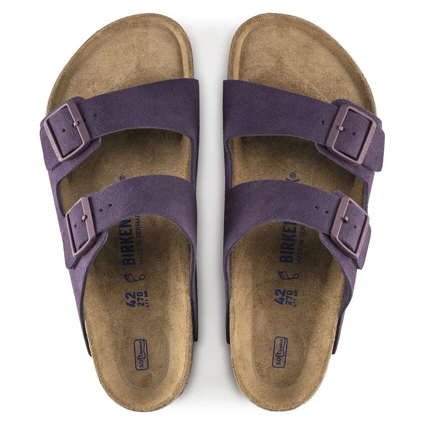 The legendary two-strap design from BIRKENSTOCK – the Arizona. Iconic style complemented with the signature comfort of the BIRKENSTOCK footbed. The tonal buckles with a textile feel and a matte design only add to this iconic style. With its additional foam layer, the soft footbed offers extra comfort all day long. The upper is made from soft suede.