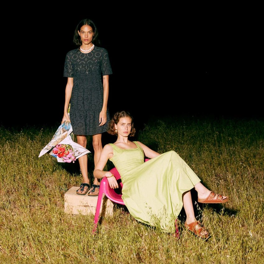 Introducing the BIRKENSTOCK + STAUD Summer Capsule: a limited-edition collection of timeless, free-spirited and versatile pieces created in partnership with luxury boutique brand STAUD. Designed for effortless day-to-night dressing, the collection includes this elevated Gizeh, made with croc embossed leather, oversized buckles and STAUD’s signature contrast-stitching. Pair with STAUD dresses and separates for any and all occasions the ultimate outfit completer. STAUD ready-to-wear and accessories available at staud.clothing.