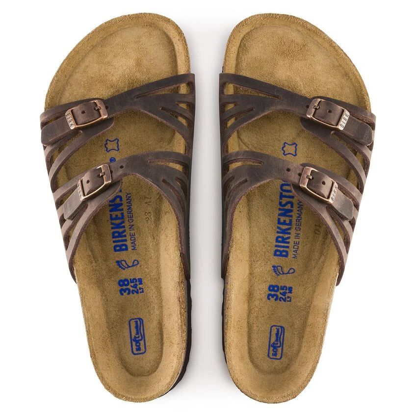 The BIRKENSTOCK Granada stands out with its natural look. It is characterized by its two perforated main straps. This is the perfect combination of femininity and function! With its additional foam layer, the soft footbed offers extra comfort and pampers feet – all day long. The upper is made from extra thick, oiled nubuck leather with an open-selvage finish.
