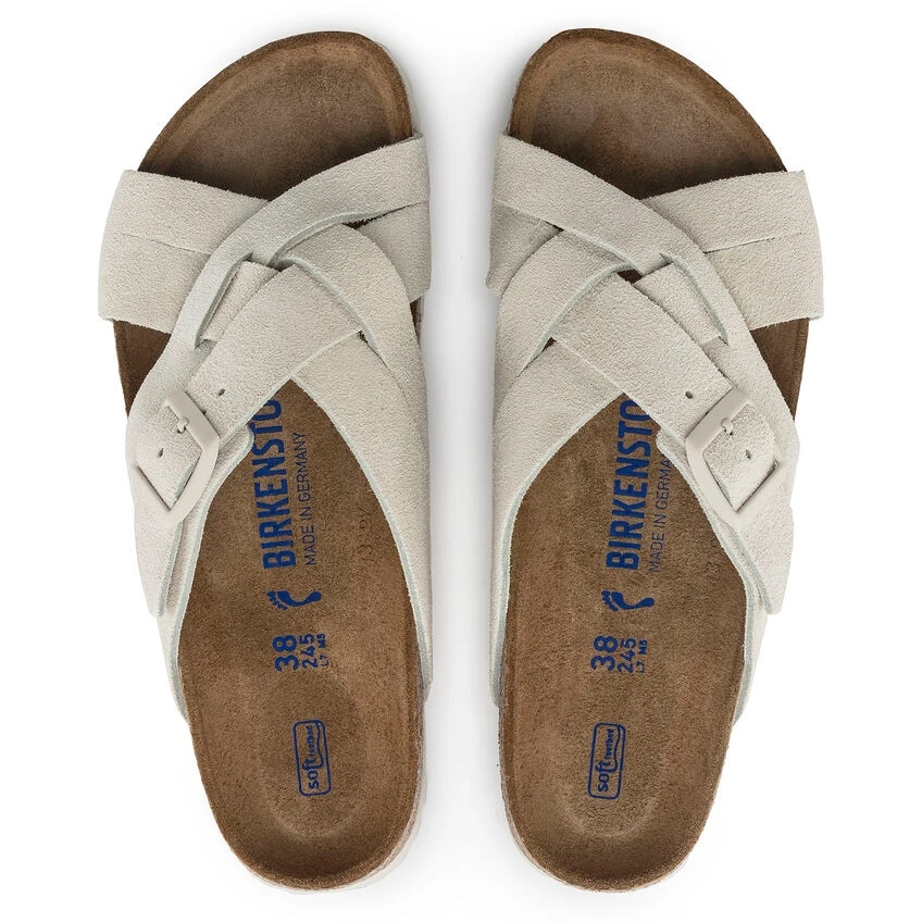 The Lugano is a retro woven-style sandal, featuring soft, suede leather crossed-straps and the classic comfort of a BIRKENSTOCK footbed. With its additional foam layer, the soft footbed offers extra comfort – all day long.