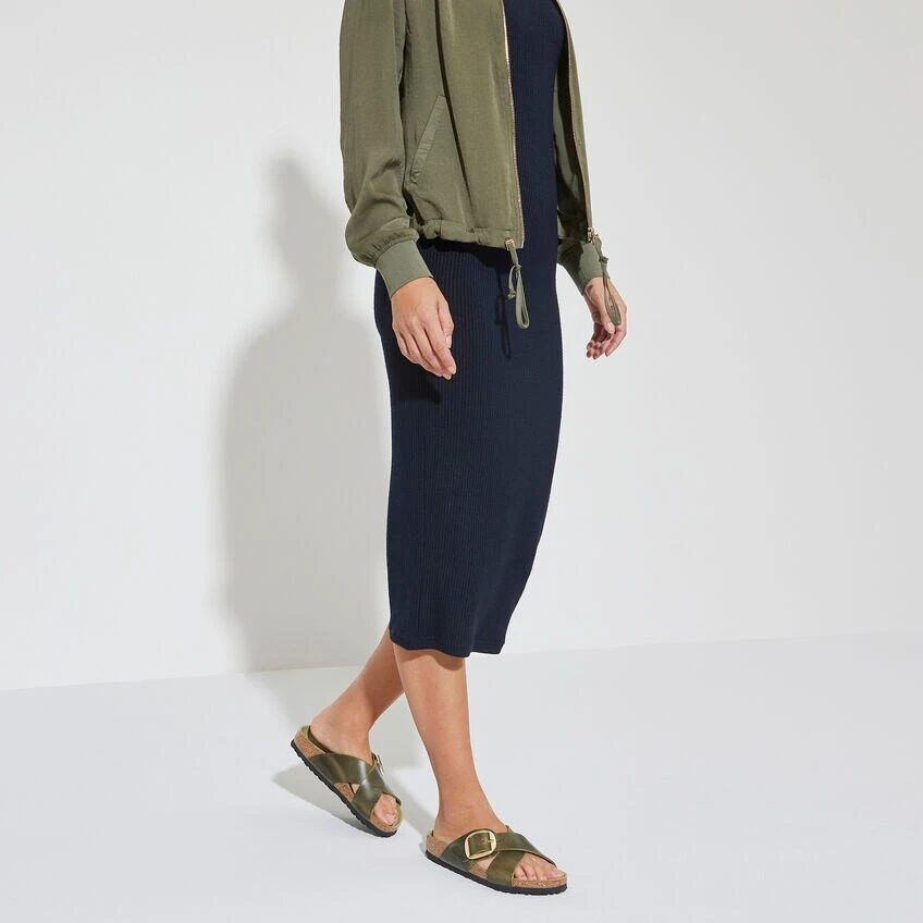 The Siena sandal gives you a new take on the classic two-strap design, with crossover straps and an oversized, elegant pin buckle. Oiled leather gives you a perfectly lived-in look, designed to age beautifully with wear. This Semi-Exquisite style features a contoured footbed wrapped in luxuriously smooth leather for a premium touch you’ll feel as soon as you step in.