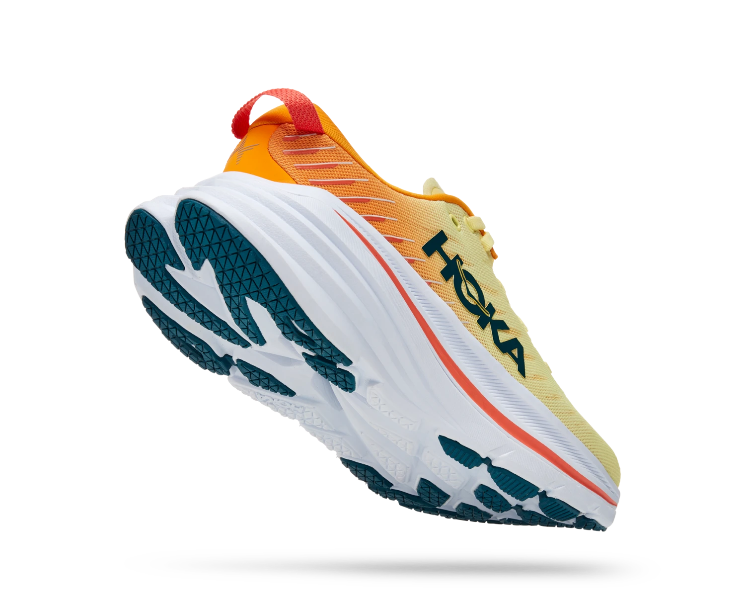 A maximally cushioned road shoe designed to go the distance, the game-changing Bondi X is spring-loaded with our propulsive carbon-fiber plate. The original Bondi cushioning and lines are here, providing the soft, balanced ride the franchise is known for. The Bondi X fine-tunes the geometry with an extended rocker for greater acceleration, while also delivering smoother toe-offs, thanks to the carbon-fiber plate. HOKA’s extended crash pad acts like a veritable marshmallow, employing the softest foam in our arsenal to date. Paired with a progressive upper with embroidered TPU yarn, the Bondi X will get you there, and then some.